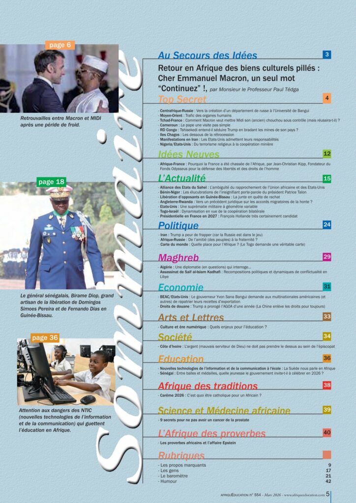 Le numéro 554 de mars 2026 peut aussi être acheté sur la boutique du magazine. Bien vouloir composer www.afriqueeducation.com (suivre les instructions jusqu’à l’obtention du pdf). Bonne lecture