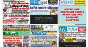 Vamara Coulibaly, Yacouba Gbané et Franck Bamba Mamadou, respectivement, directeurs des quotidiens ivoiriens, l’Inter et Soir Info (indépendants), du Temps (opposition) et de Notre Voie